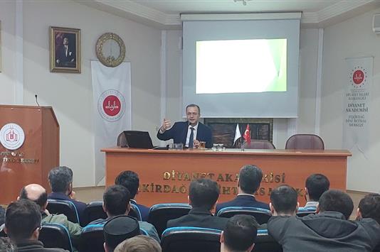 Tekirdağ Dini İhtisas Merkezimizde Mesleki Eğitim Programı Çerçevesinde Atatürk Üniversitesi Sosyal Bilimler Enstitüsü Müdürü Prof. Dr. Hanifi ŞAHİN Hocamız konferans verdiler.
